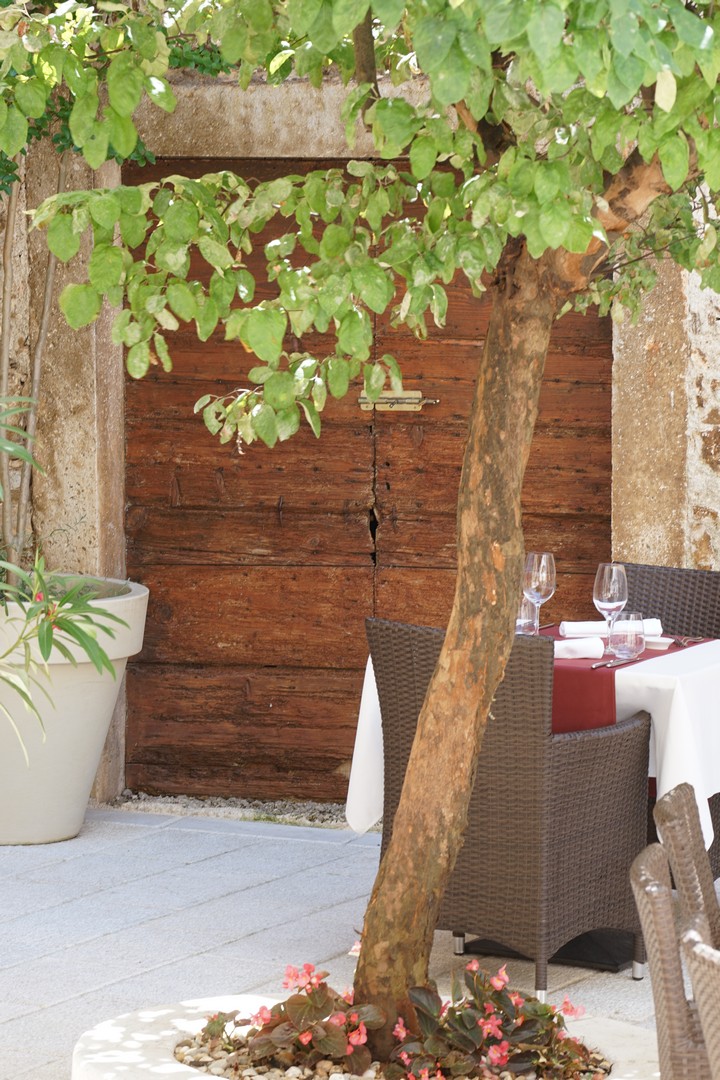 The restored Palace Bembo has an attic and 3 floors and as the street slopes, there is a mezzanine outside balcony for sitting and enjoying a wine and / or meals (good beer, wine and food is available on all levels). The lowest level is cool on a hot day whilst the views are amazing from the top. A Venetian balcony over-looks a square where concerts are presented; we were lucky to see performers at the International Guitar Festival.